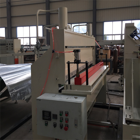 7. Produktionslinjen för aluminium-plastkompositpaneler använder en klippmaskin som drivs av hydrauliskt tryck. Klippmaskinen är snabb och smidig. Med tillämpning av programmerbar