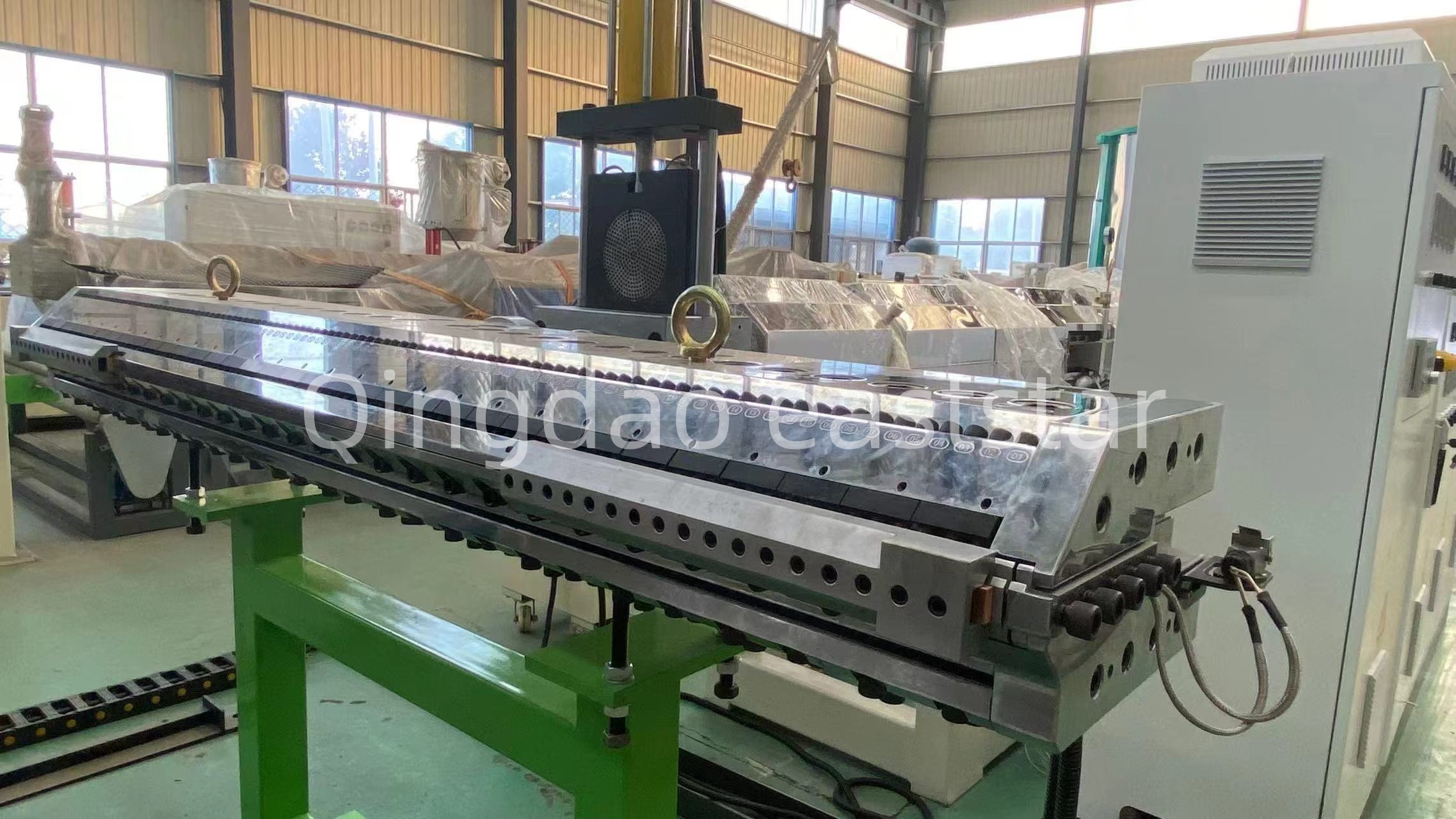 Matrissystemet förPE dräneringsbräda produktionslinjeantar en klädhängare, med en formbredd på 1650 mm, som kan producera enskikts dräneringsbrädor med en tjocklek på 0,8-1,2 mm. Matrisens yta är förkromad och polerad till en spegelfinish, med en hålighetsgrovhet på Ra0,1um och en råhet på Ra0,05um. Tvåvalsformningsanordningen är utrustad med Φ450 × 1700 mm rullar, med en rullythårdhet på HRC58-62 och en krompläteringstjocklek på 0,08 mm. En speciell multi-runner design säkerställer enhetlig temperatur. Dessa professionella konfigurationer garanterar att dräneringsbrädeprodukterna som produceras avproduktionslinjehar en enhetlig prickad struktur och stabil dräneringsprestanda.