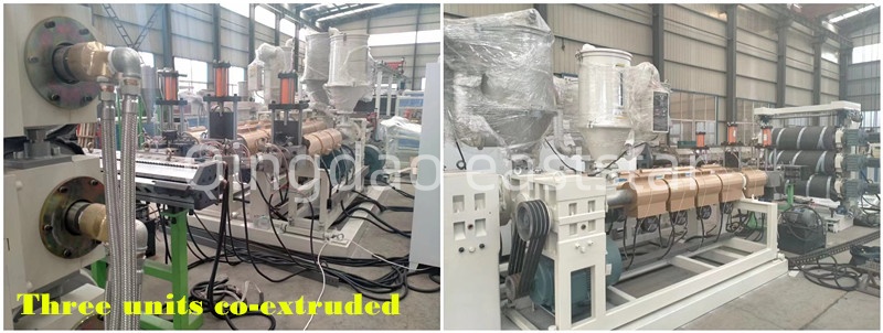 Vi har utrustatABS flerskikts co-extrudering ark produktionslinjemed komplett matning och hjälpsystem. SJ-130 extrudern är utrustad med en E-1000 skruvmatare i rostfritt stål och SJ-70 extrudern är utrustad med en E-300 vakuummatare, vilket säkerställer exakt tillförsel av olika råmaterial. Kylstödet är utrustat med 8 meter långa rullar av rostfritt stål och tre justerbara kantskärare, vilket säkerställer tillräcklig kylning av plåten och snygga kanter. Skärmaskinen använder en mekanisk elektrisk sax, utrustad med en koreansk Autonics-kodare, för att uppnå automatisk skärning med fast längd.