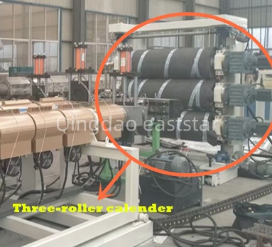 Matrissystemet förABS flerskikts co-extrudering ark produktionslinjeantar en klädhängares flödeskanaldesign, med en formbredd på 2200 mm och utrustad med en precisionsfördelare för att säkerställa enhetlig materialfördelning i varje lager. Kalandern med tre valsar är utrustad med Φ450×2500 mm spegelblanka valsar, med en rullythårdhet på HRC58-62 och en förkromad tjocklek på 0,08 mm. En speciell flerkanalsdesign säkerställer jämn temperatur. Valstemperaturkontrollsystemet använder mjukat renat vatten som medium, med en temperaturkontrollnoggrannhet på ±1 ℃, och är utrustat med tre 2,2KW varmvattenpumpar och tre uppsättningar 12KW värmare för att ge en exakt temperaturmiljö för arkformning.