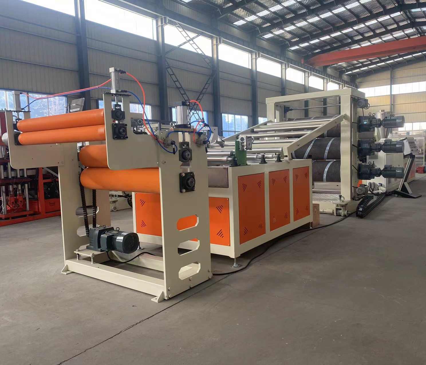 Introduktion av en avancerad produktionslinje utformad för tillverkning av PVC-produktionslinje för transparent kristallskiva. Denna toppmoderna linje är skräddarsydd för att producera transparenta PVC-plastskivor med ett breddområde som spänner från 200 till 600 millimeter och en tjocklek som varierar från 0,8 till 3 millimeter. Utrustad med banbrytande maskiner inklusive en enkelskruvsextruder (SJ90 eller SJ-120), en mångsidig T-formad flexibel stans och en tre-vals kalander, antingen vertikalt orienterad eller lutande i 45 graders vinkel. Dessutom innehåller den en vattentemperaturregulator, ett kylfäste i rostfritt stål med en justerbar trimkniv, en dragmaskin av gummirulle och en luftexpanderande axellindare med två lägen.