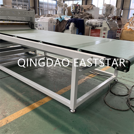 pvc belysning panel extruder utrustning PVC-belysningstavla extruderutrustning: Utrustningen består huvudsakligen av en dubbelskruvsextruder, en plåtform, en tre-rullskalander, en kylkonsol, en gummirulletraktionsmaskin, en skärmaskin och en transportanordning.