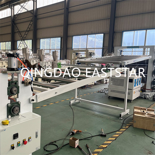 PVC-belysningstavla extruderutrustning: Utrustningen består huvudsakligen av en dubbelskruvsextruder, en plåtform, en tre-valskalander, en kylkonsol,