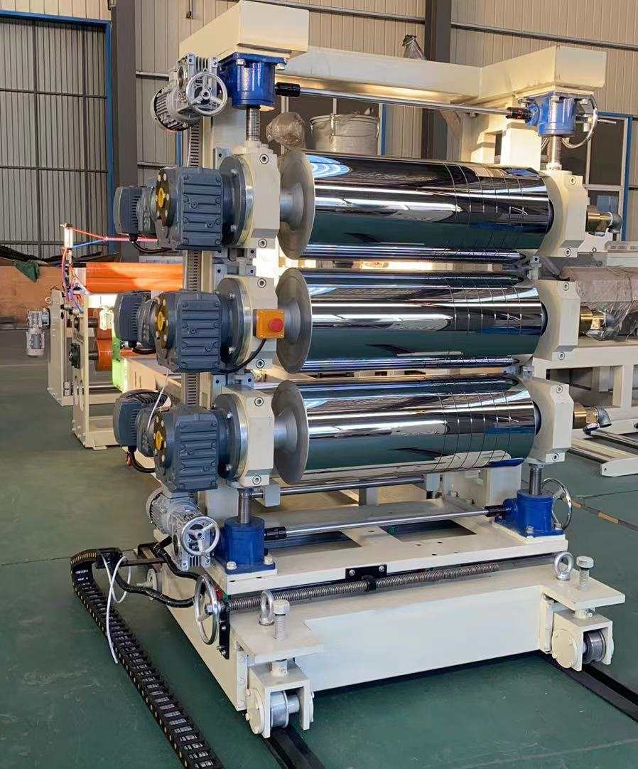 Produktionslinje för transparenta mjuka dörrgardiner i PVC: Kan producera transparenta PVC-plastskivor med en bredd från 200 till 600 millimeter och en tjocklek på 0,8 till 3 millimeter. Utrustningen inkluderar en SJ90 eller SJ-120 enkelskruvsextruder, en justerbar T-formad flexibel form, en vertikal eller 45 grader lutad trevalskalander, en tre-i-ett vattentemperaturregulator, ett kylfäste i rostfritt stål utrustat med en justerbar trimkniv med bred bredd, en dragmaskin för luftrulle och dragkraft för luftaxel och dragkraft. De producerade arken har en blank yta, hög transparens, mjukhet, inga sprickor, ingen lukt, inga bubblor och är flexibla, köldbeständiga, nötningsbeständiga, syra-alkali-beständiga och korrosionsbeständiga.