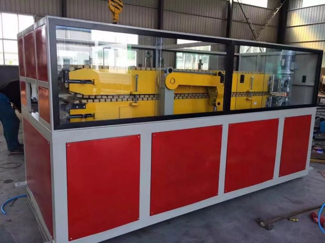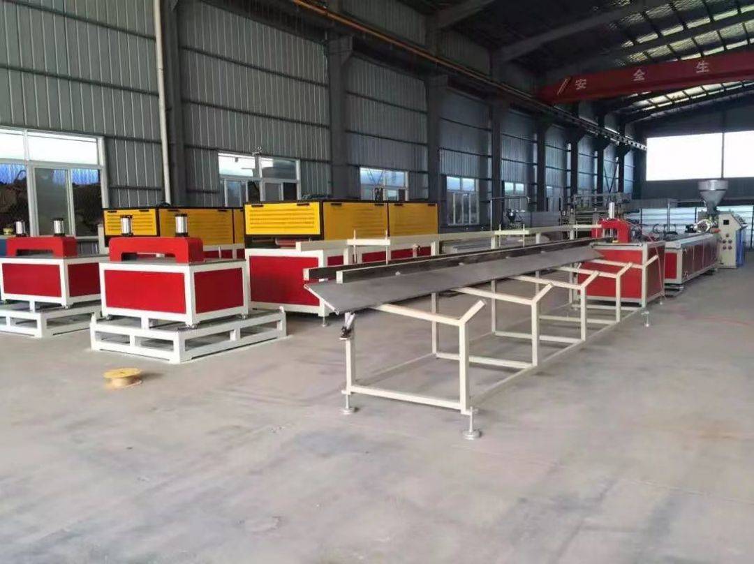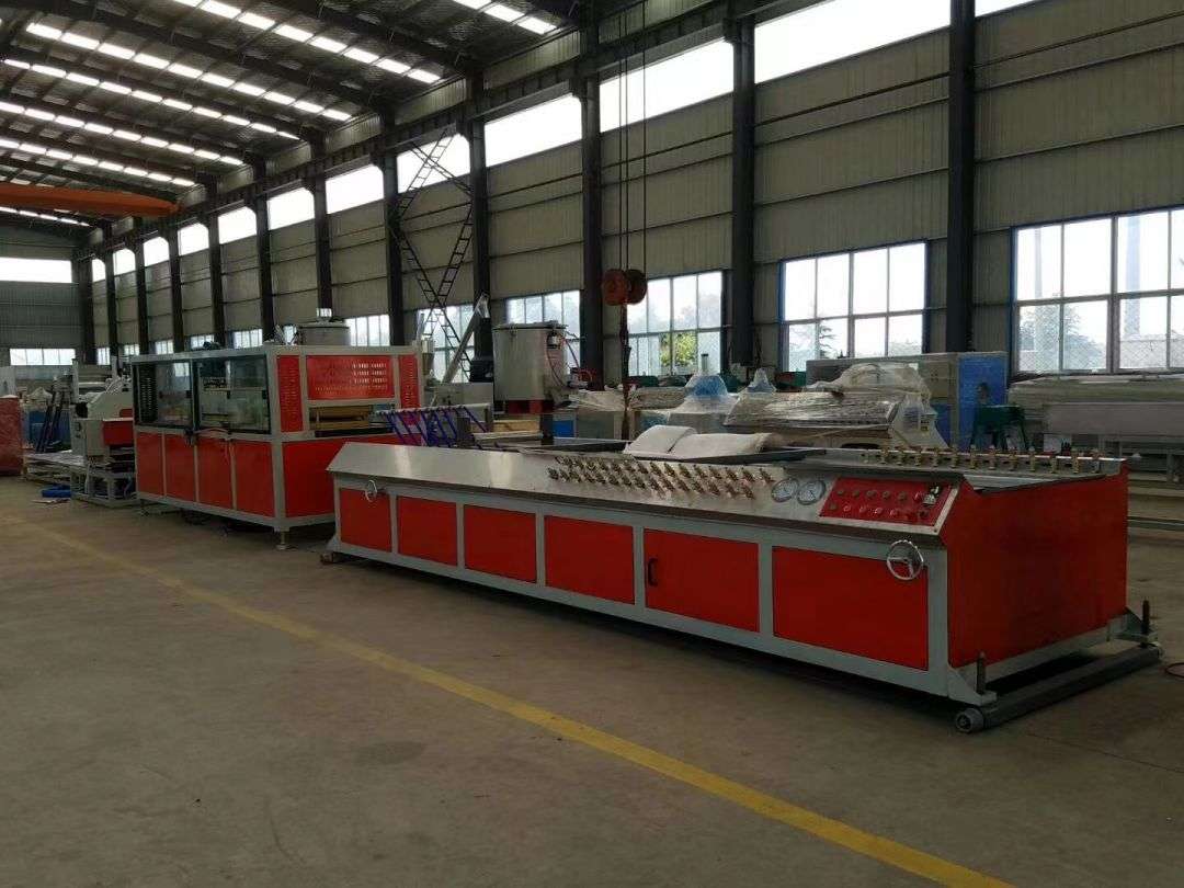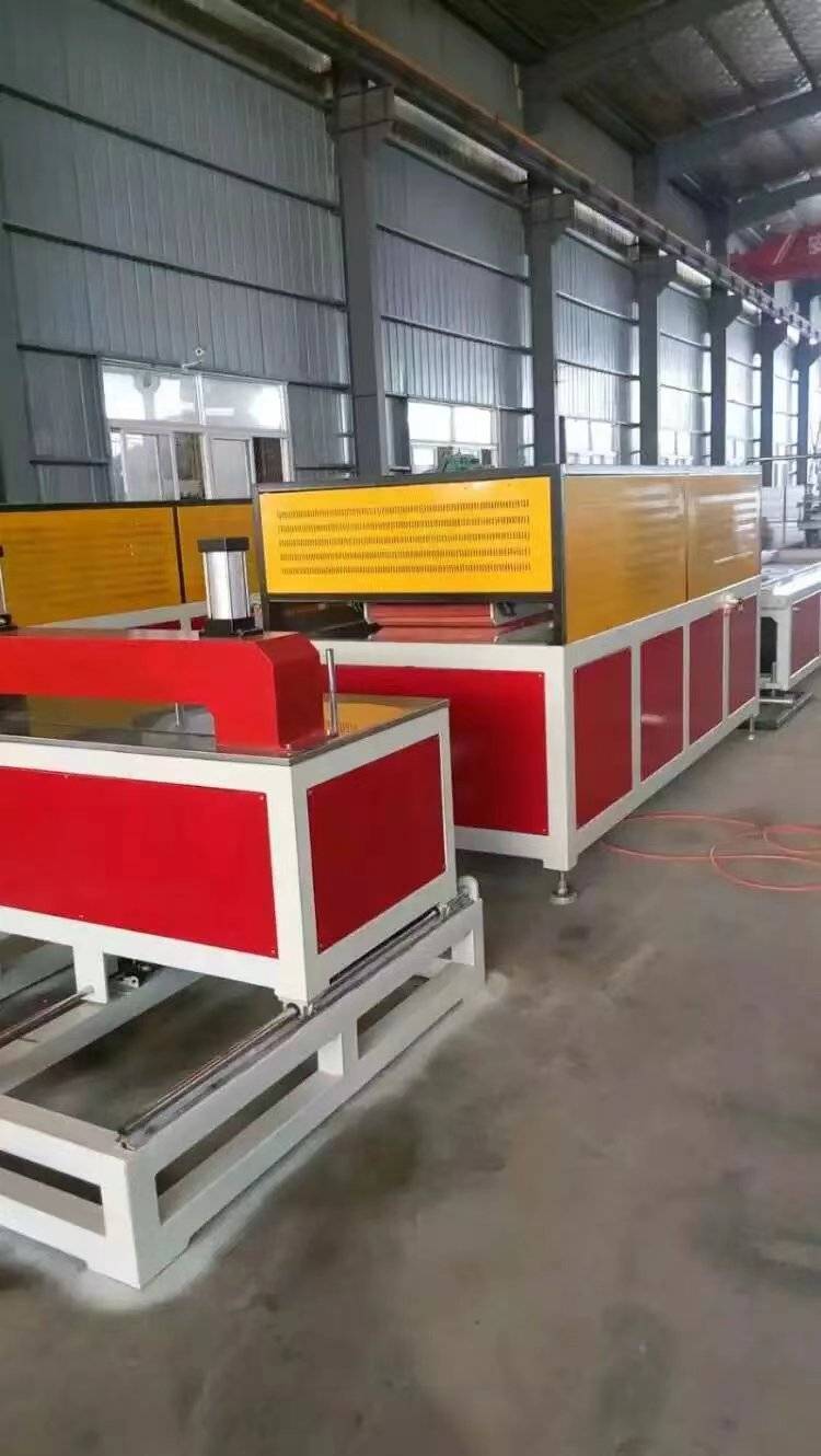 Produktionslinjen för PVC-väggpaneler består huvudsakligen av en konisk dubbelskruvsextruder, ett vakuumformningsbord, en traktor, en skärmaskin och ett materialmottagningsställ.